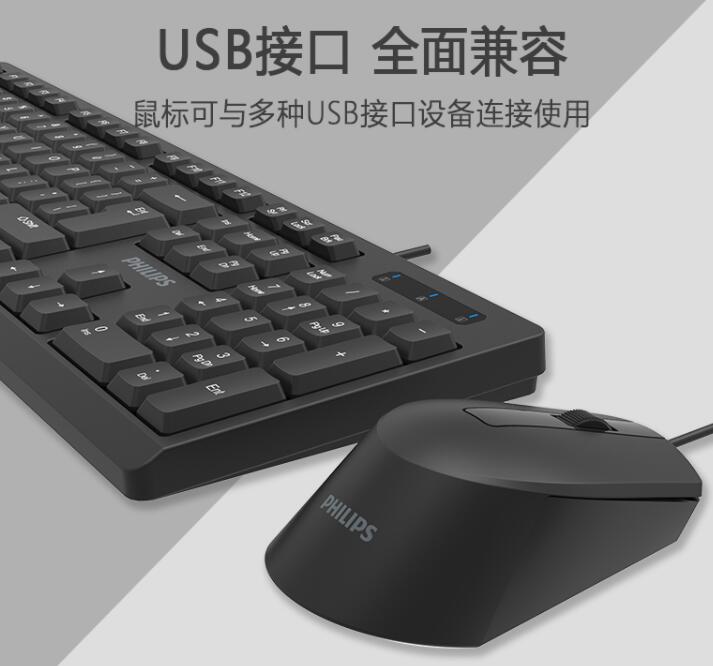 飛利浦SPT6234有線辦公鍵鼠套裝 筆記本臺式電腦USB商務(wù)鍵盤鼠標
