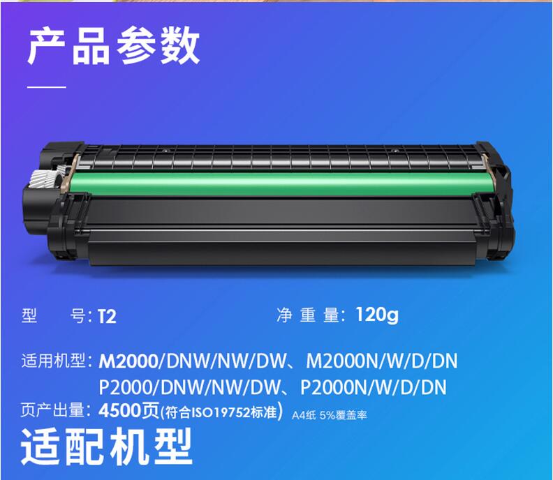 得力T2原裝硒鼓墨盒碳粉墨粉M2000DW M2000DNW M2000N DN NW P2000D P2000W 2000激光復印機打印機粉盒通用