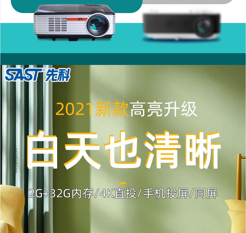 先科投影儀家用臥室小型 便攜4k超高清一體機(jī)可連手機(jī)投影電視高清1080p智能家庭影院辦公會議培訓(xùn)教學(xué)投影機(jī)
